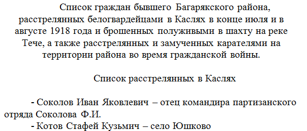 Стараниями неравнодушных к истории своего края людей, коих остались единицы (что весьма жаль), была поднята из небытия, доработана и напечатана рукопись Базуева Геннадия Кузьмича "Расплата". Материалы рукописи о гражданской войне в нашем крае любезно предоставили